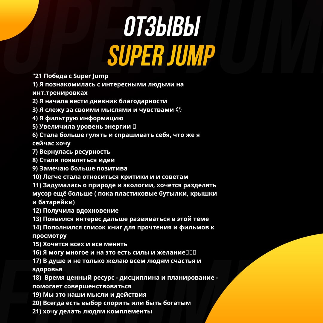 Всё это и многое другое ждёт тебя на тренинге Super Jump.